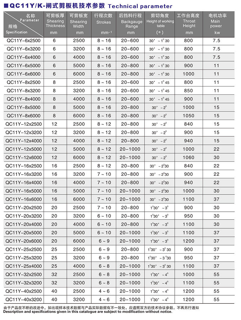 QC11Y/K-閘式剪板機(jī)技術(shù)參數(shù) Technical Parameter
